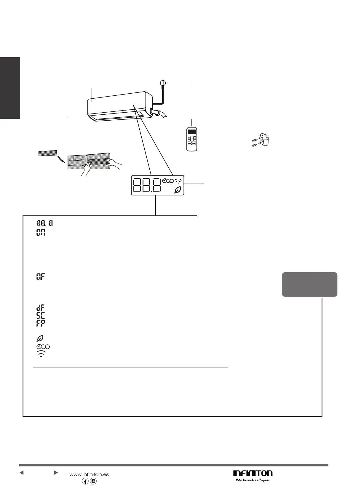 "Apresenta a temperatura, função de funcionamento e códigos de erro: