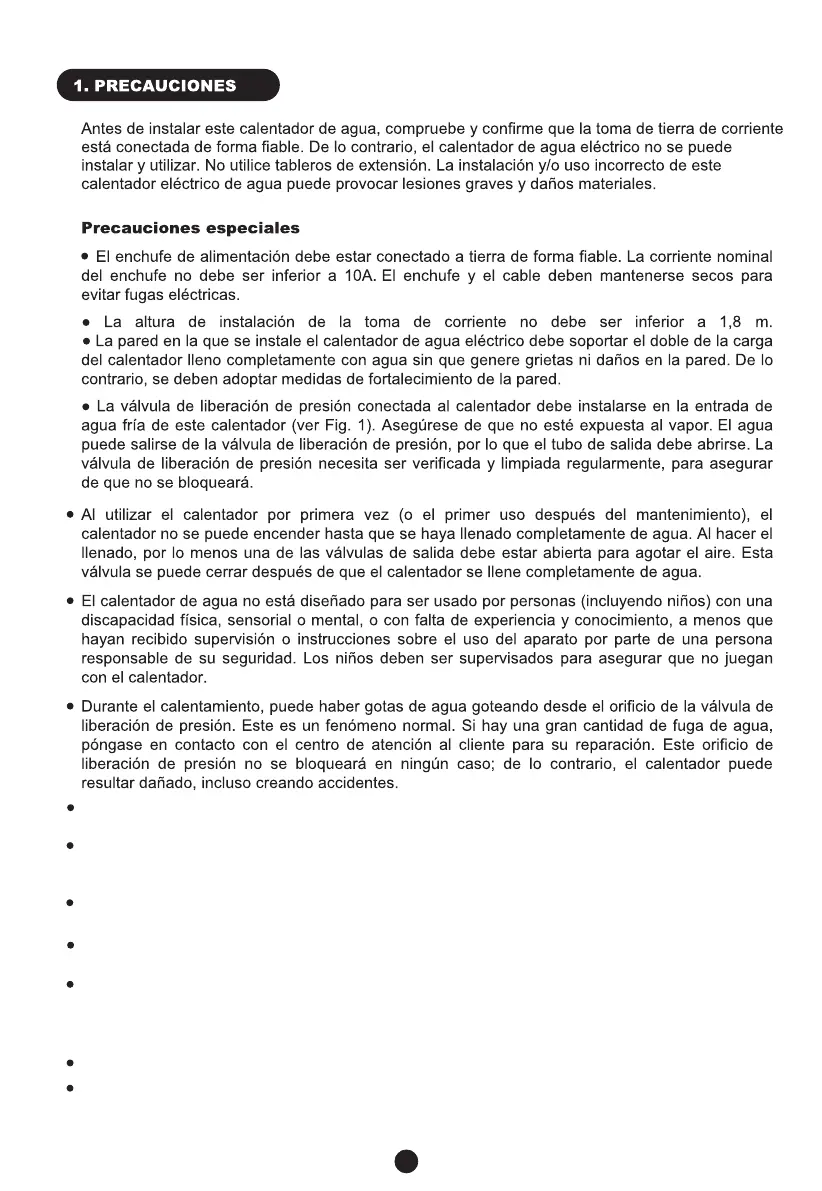 Debido a que la temperatura del agua dentro del calentador puede alcanzar hasta 75ºC, el agua