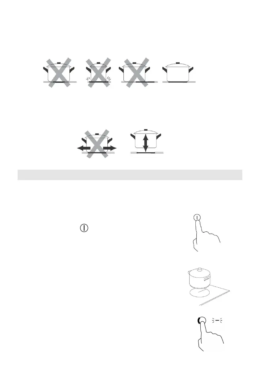 the same size as the cooking zone. Always centre your pan on the cooking zone.