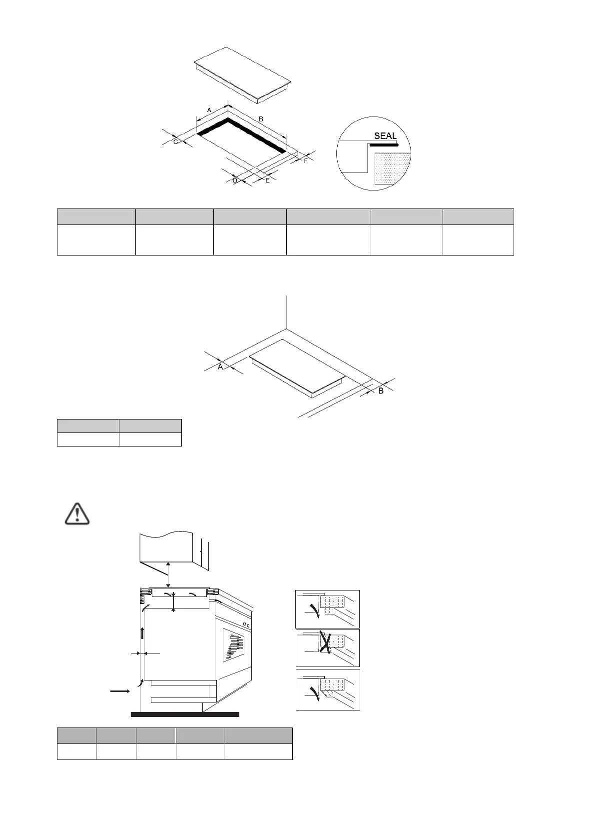 Note: The safety distance between the hotplate and the cupboard above the hotplate should be at