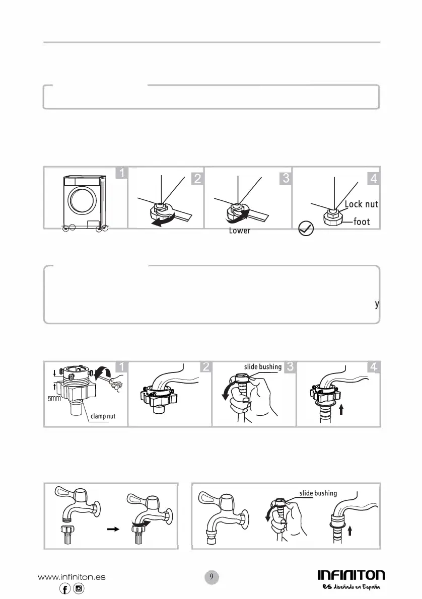 2. desserrez le contre-écrou, tournez les pieds jusqu'à ce qu'il entre en contact étroit avec le sol.