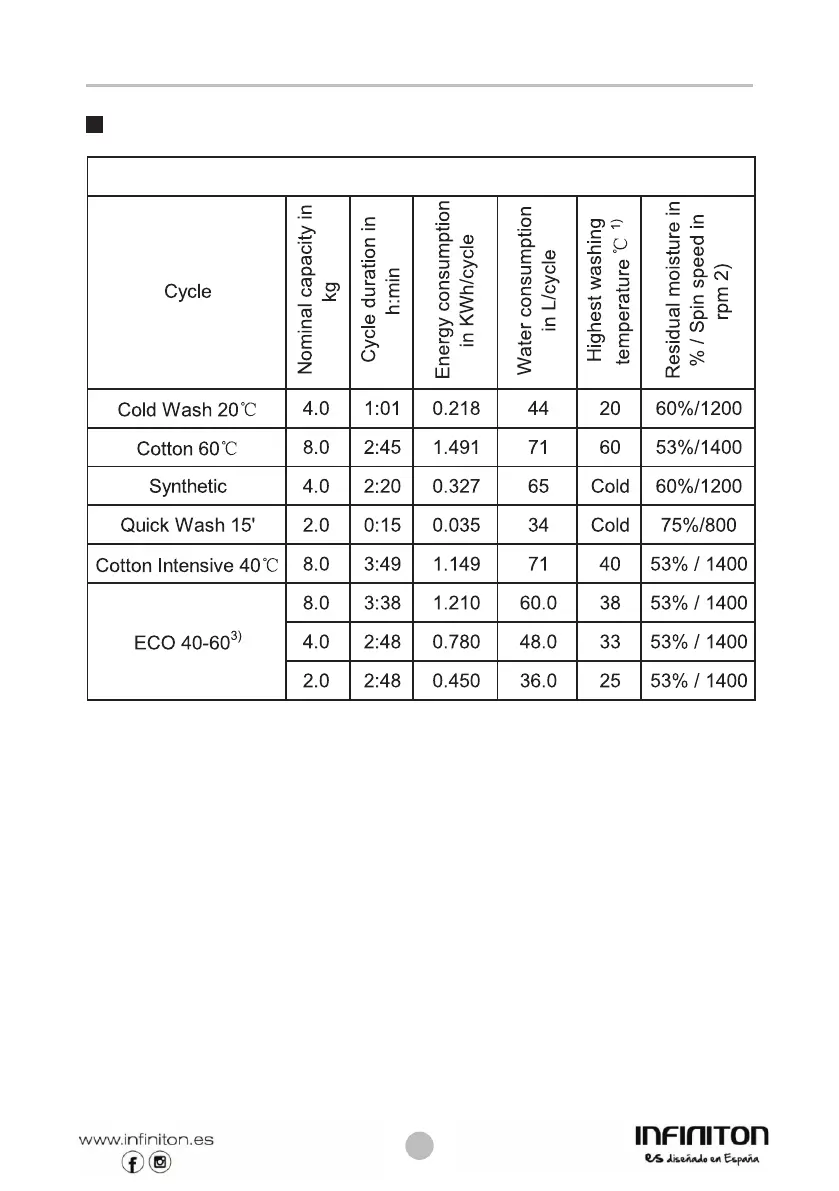 Energy test program: Cotton Intensive 60°C/40°C.Speed: the highest speed; Other as the default.