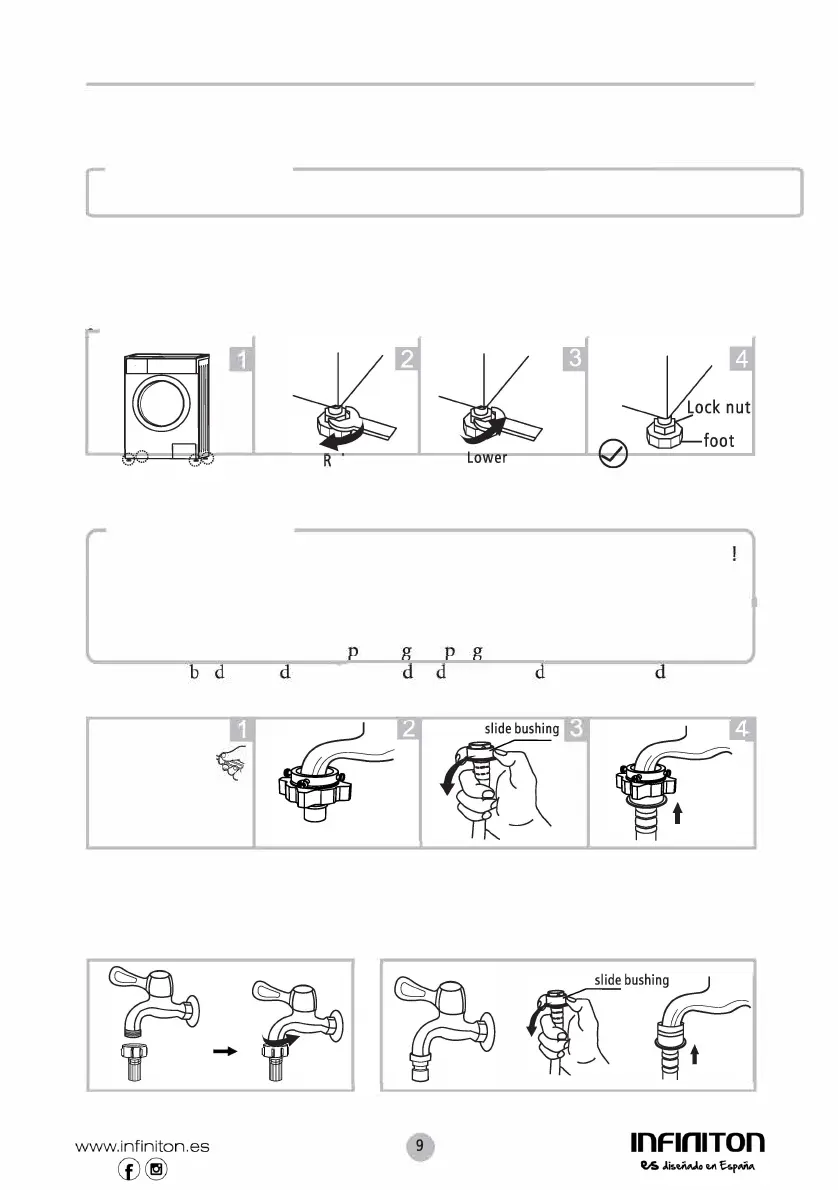 • As porcas de seguran�a em todos os quatro pés devem ser aparasadas rmemente contra o alojamento.