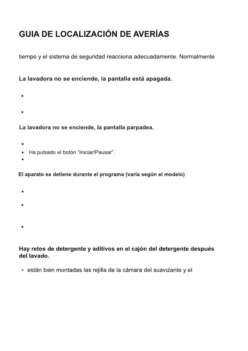Compruebe si hay demasiada espuma dentro. La máquina activará la