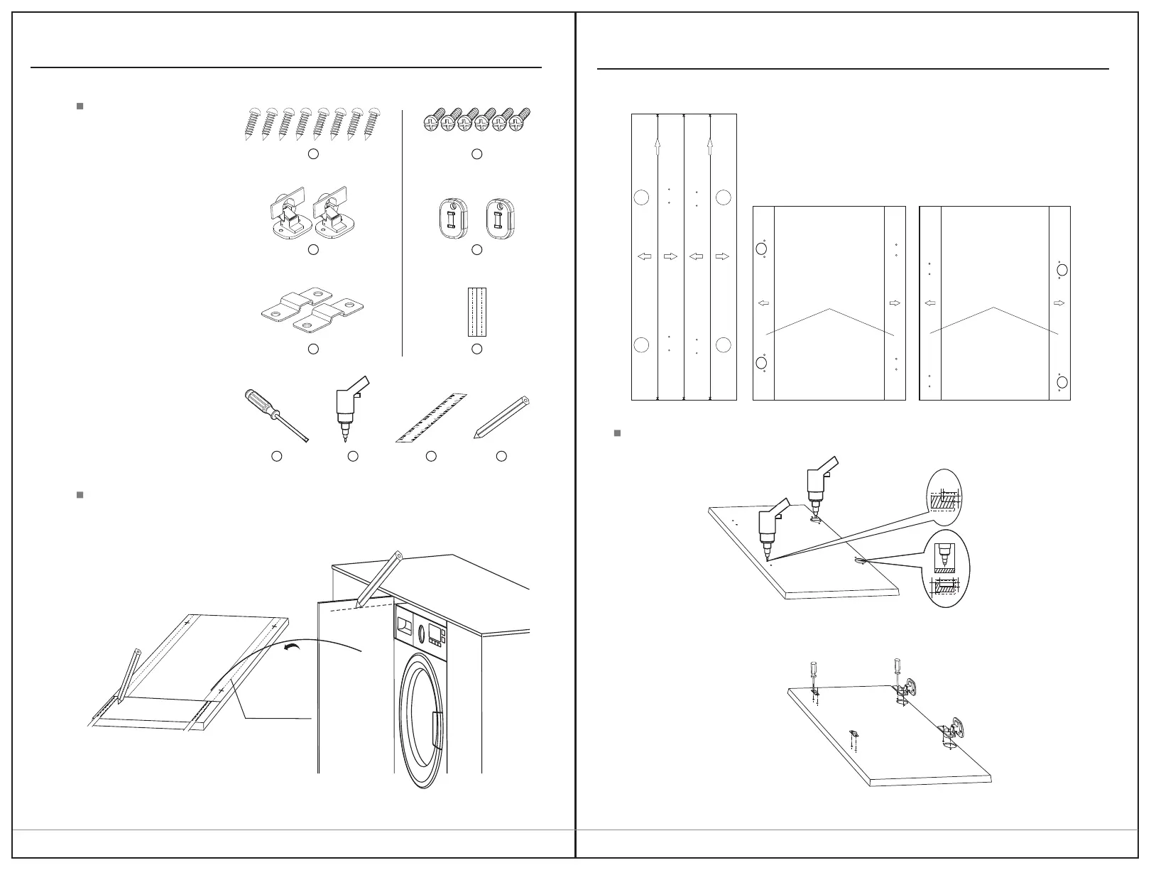 1. Faça a marca na porta de acordo com o armário e a altura da máquina de lavar roupa.