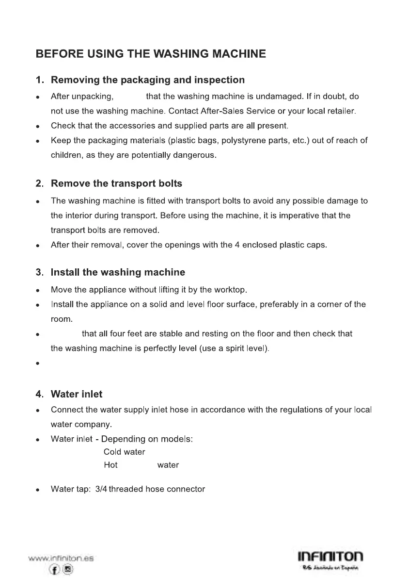 Ensure that the ventilation openings in the base of the washing machine