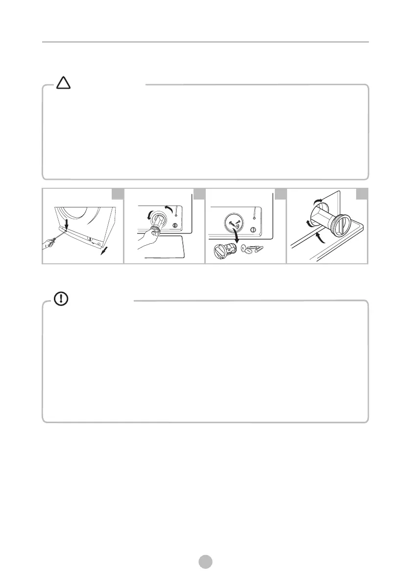 • Algumas máquinas não têm mangueira de drenagem de emergência, gire a tampa inferior