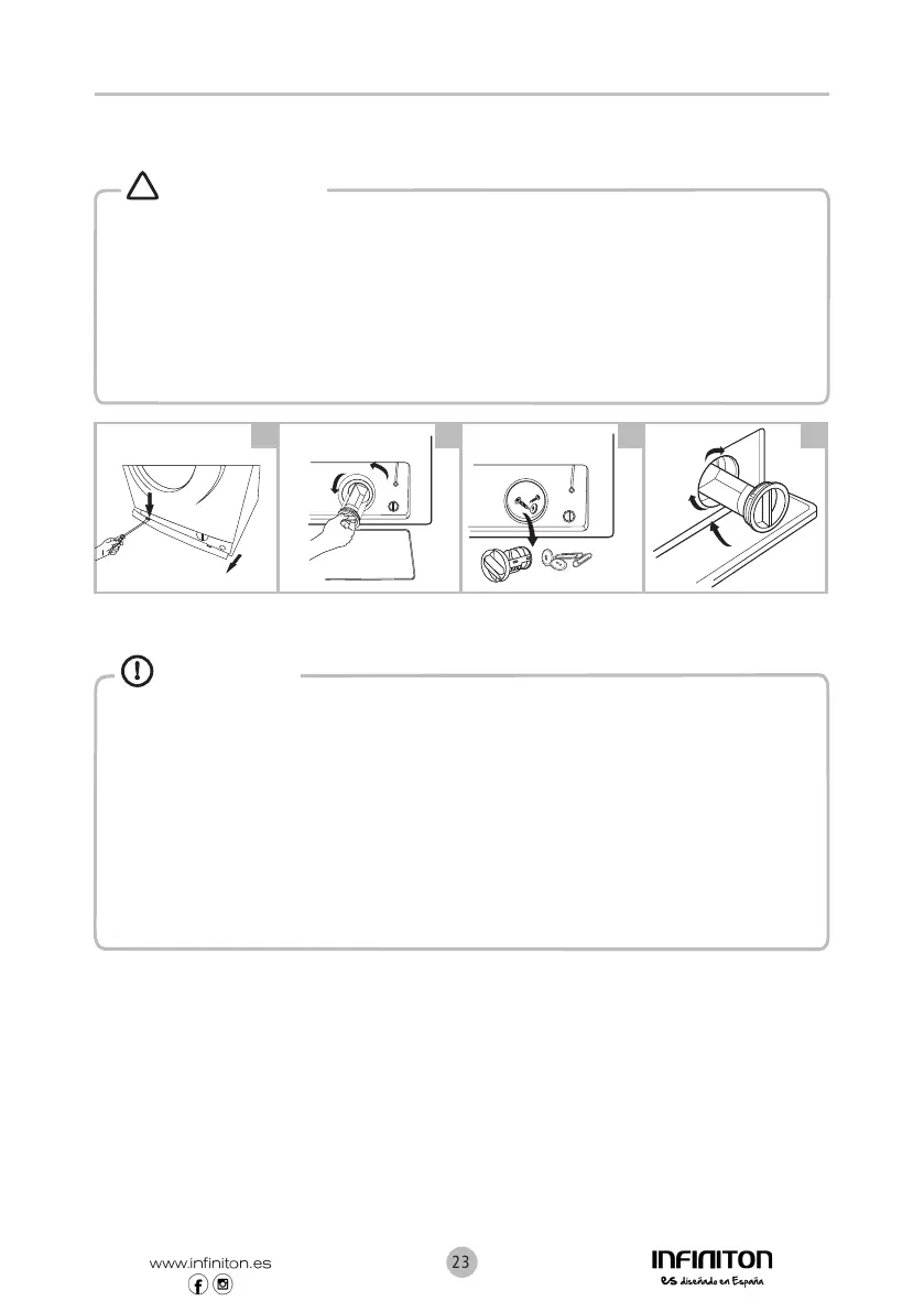• Algumas máquinas não têm mangueira de drenagem de emergência, gire a tampa inferior