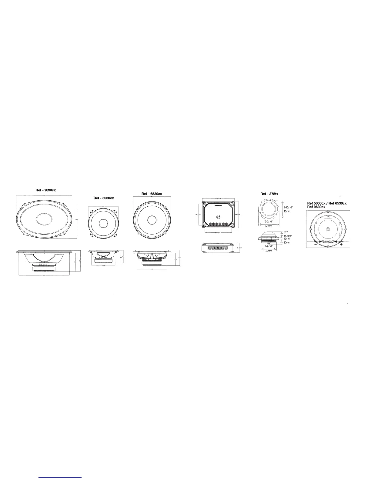 Infinity 3032cfx - Speaker Dimensions Overview; Ref-375 tx Speaker Dimensions; Ref-5030 cx;Ref-6530 cx Speaker Dimensions; Ref-9630 cx Speaker Dimensions