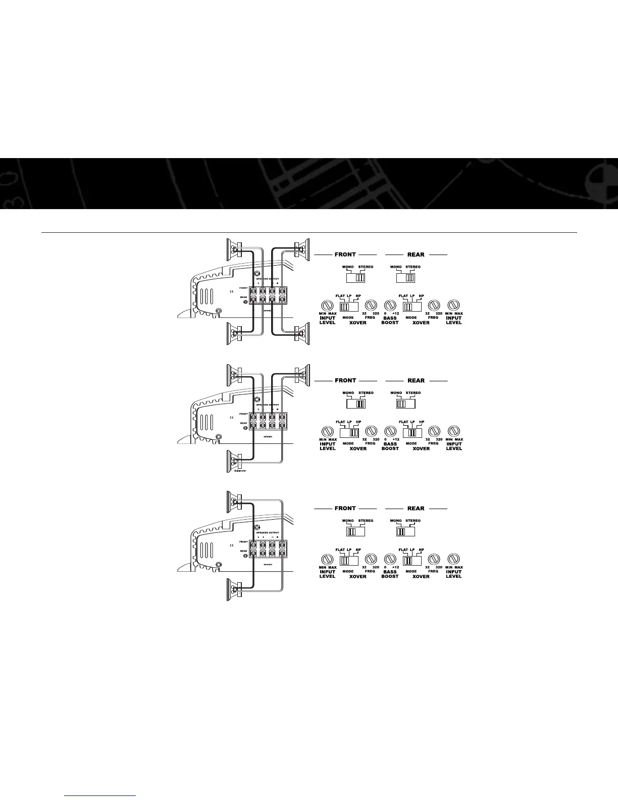 Figure 8. 7541a is set up for 3-channel operation to drive a set of full-range speakers and a subwoofer.