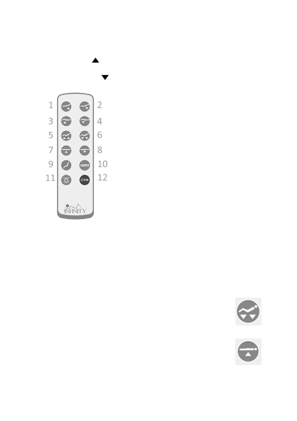 The DOWN arrow ( ) indicates lowering the corresponding parts of the bed.