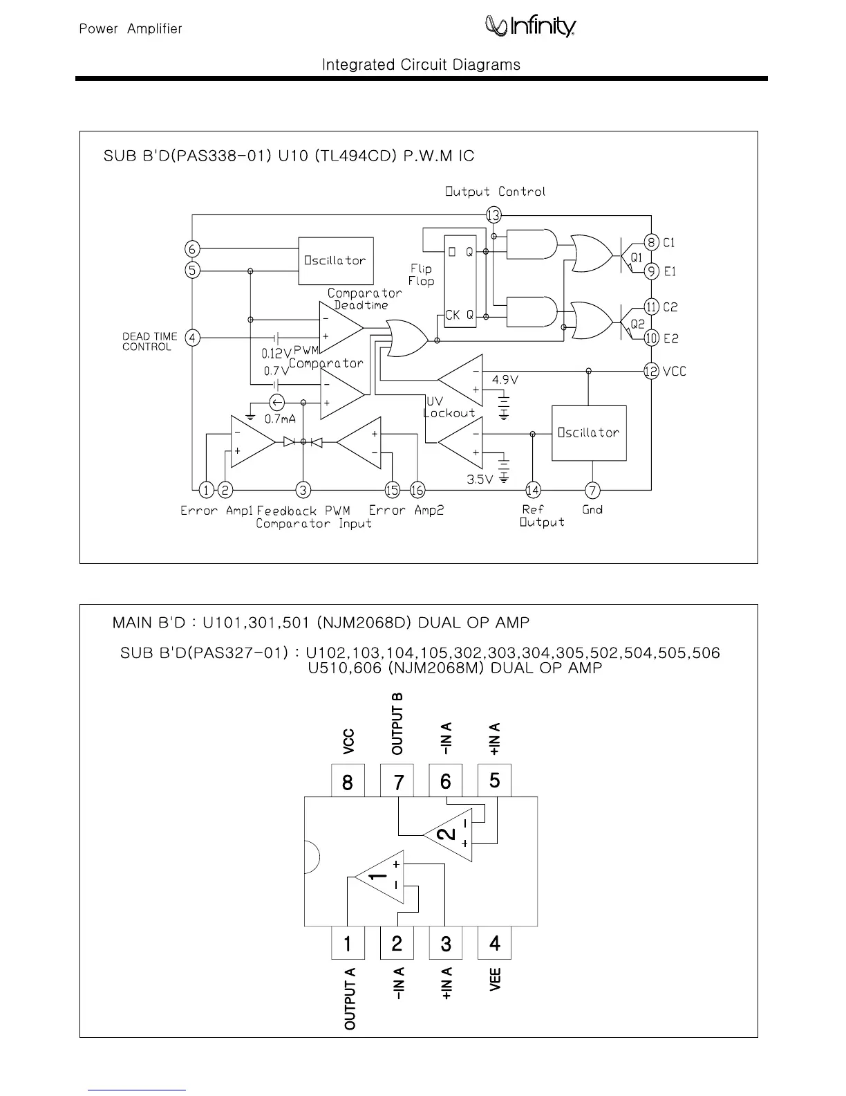 Infinity 5761A - REF 5761 A ELECTRICAL PARTS LIST ADDENDUM IC;TRANSISTOR PINOUTS