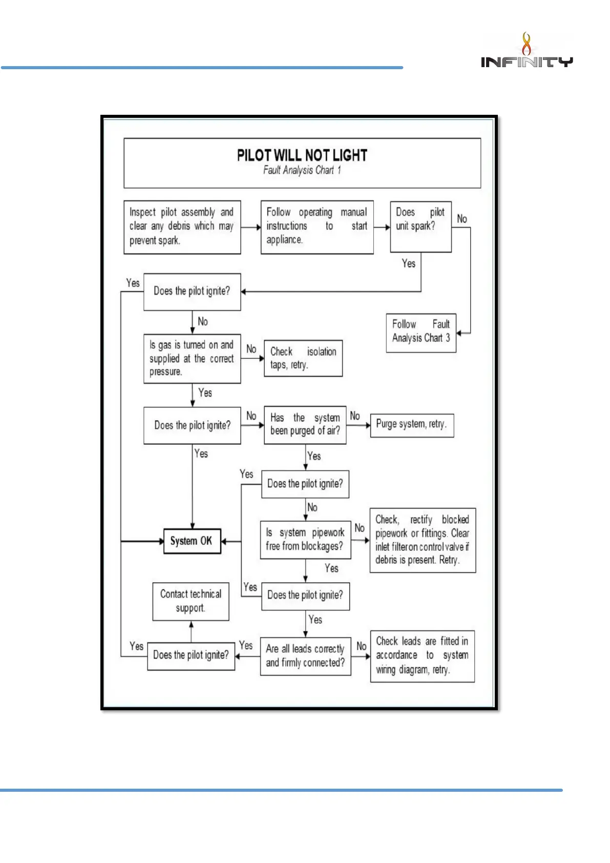 Infinity 890 HDBF - Fault Finding; PILOT WILL NOT LIGHT - Fault Analysis Chart 1