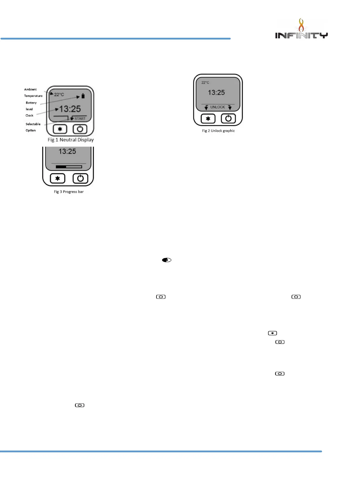 the receiver. Six flame levels are selectable. Press whilst the display is active to display the current flame