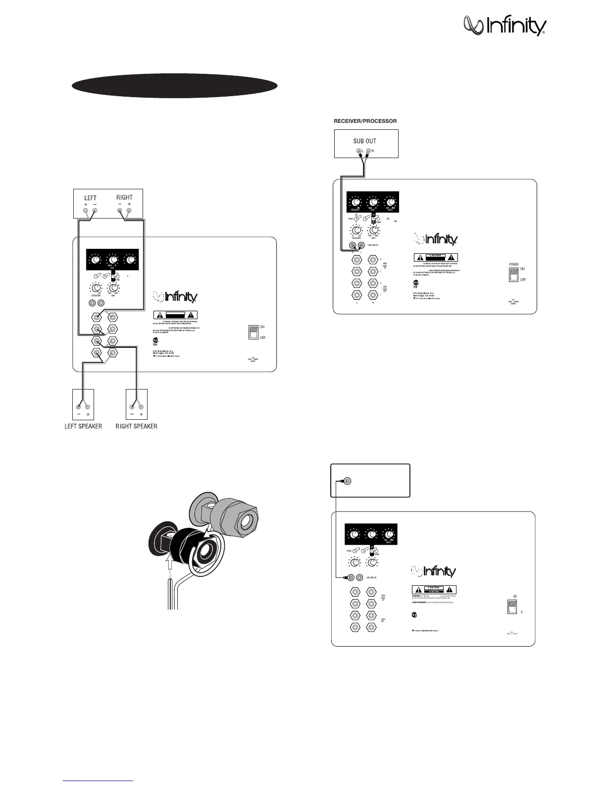 NOTE:Some receivers have a single subwoofer output (do not confuse
