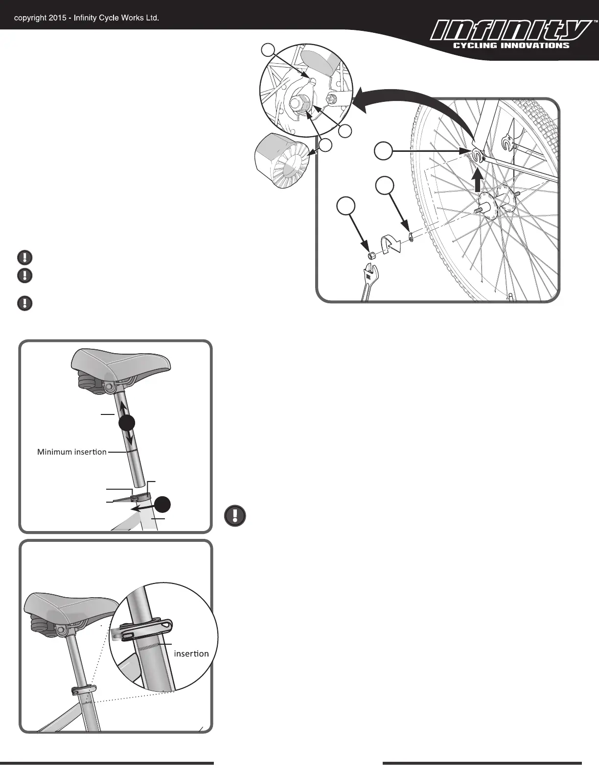 Be sure that the seat post is inserted far enough into the frame so that the "minimum