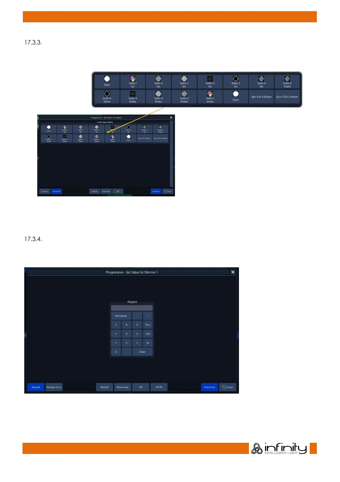 Note: Values entered here alre always entered in Percent. If you want to enter DMX Values, press the [.]