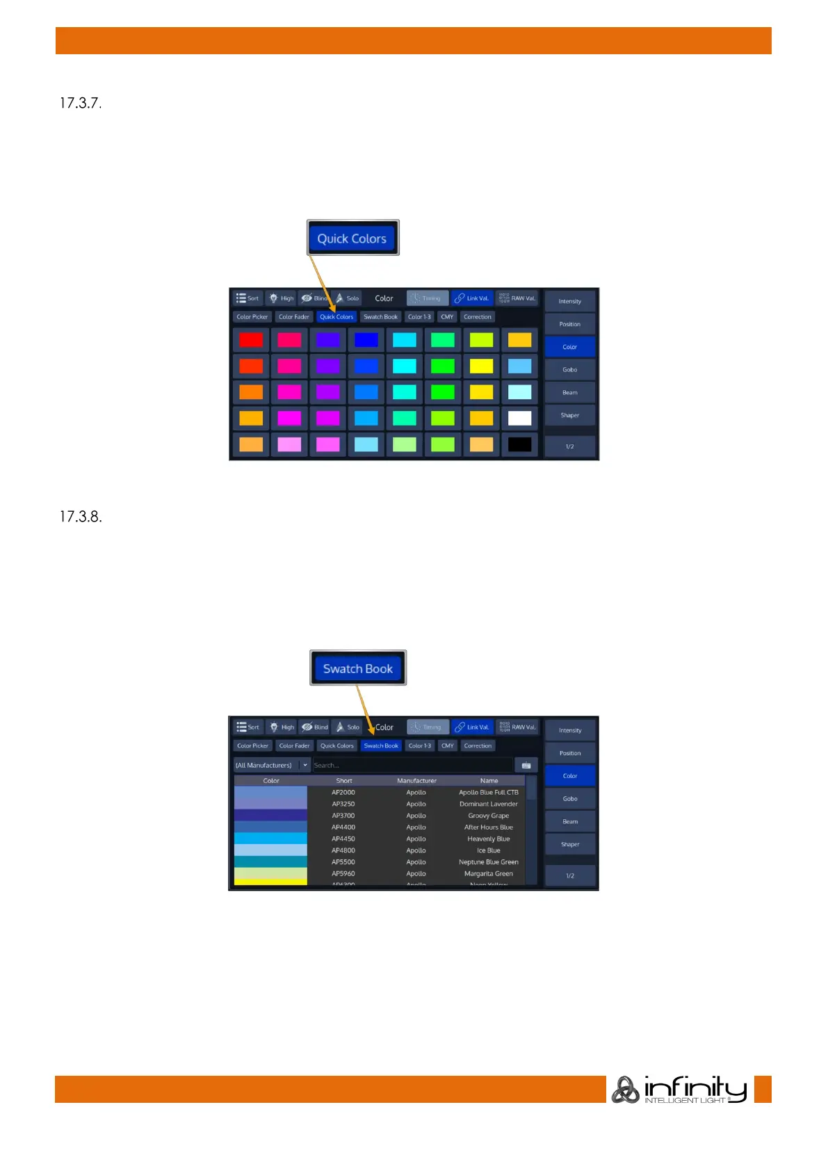 Press the Color button found in the programmer side menu and select Quick Colors from the menu bar.