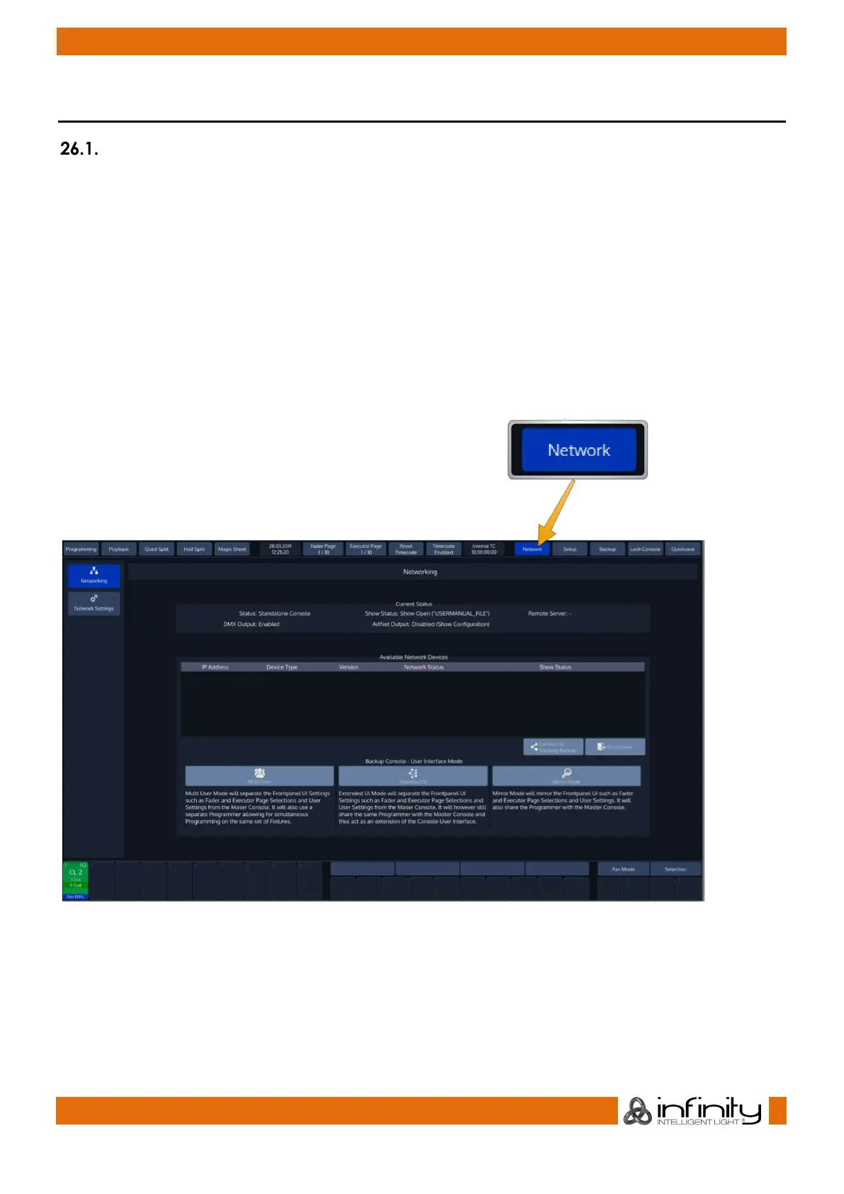 from the master console and disable its own DMX and ArtNet output while in Backup mode. The Backup