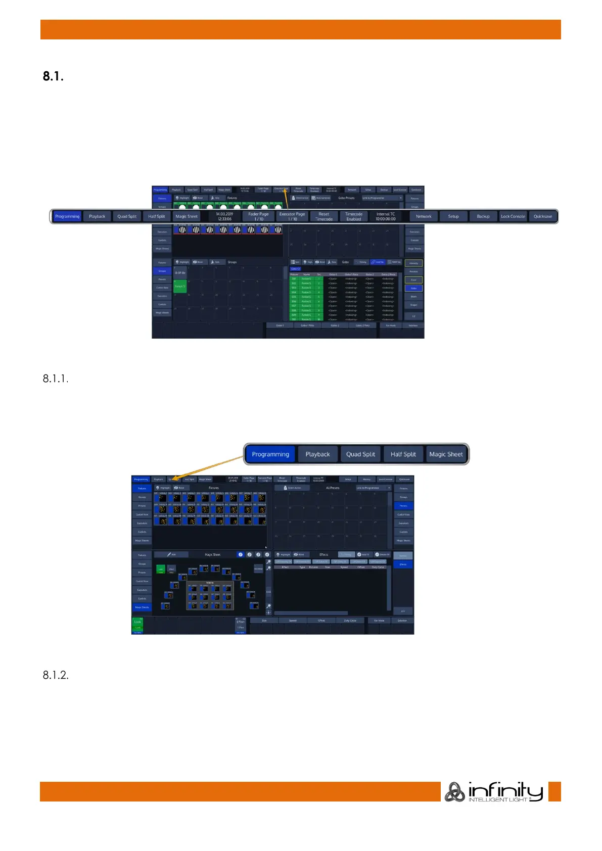 Timecode and the active fader and executor pages.
