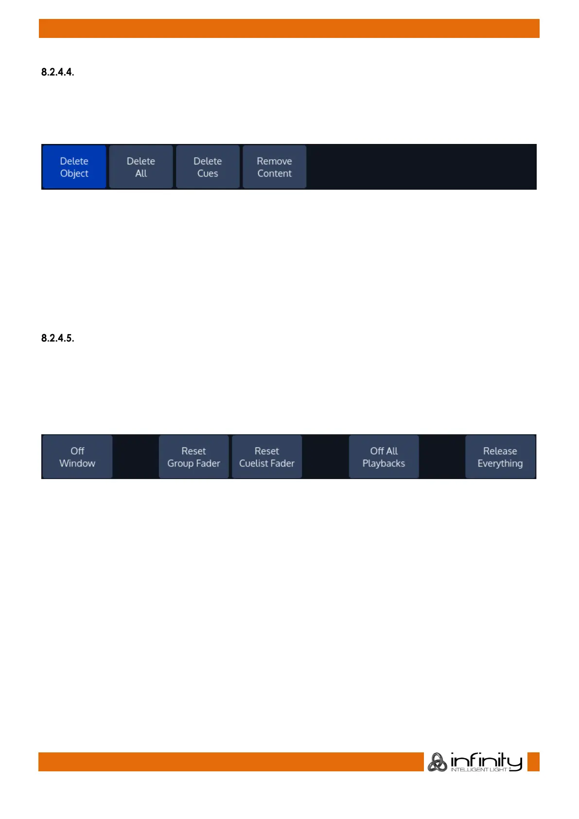 Remove Content: Will remove all touched Values (if applied to a Preset or Cue) from the Preset or Cue, or