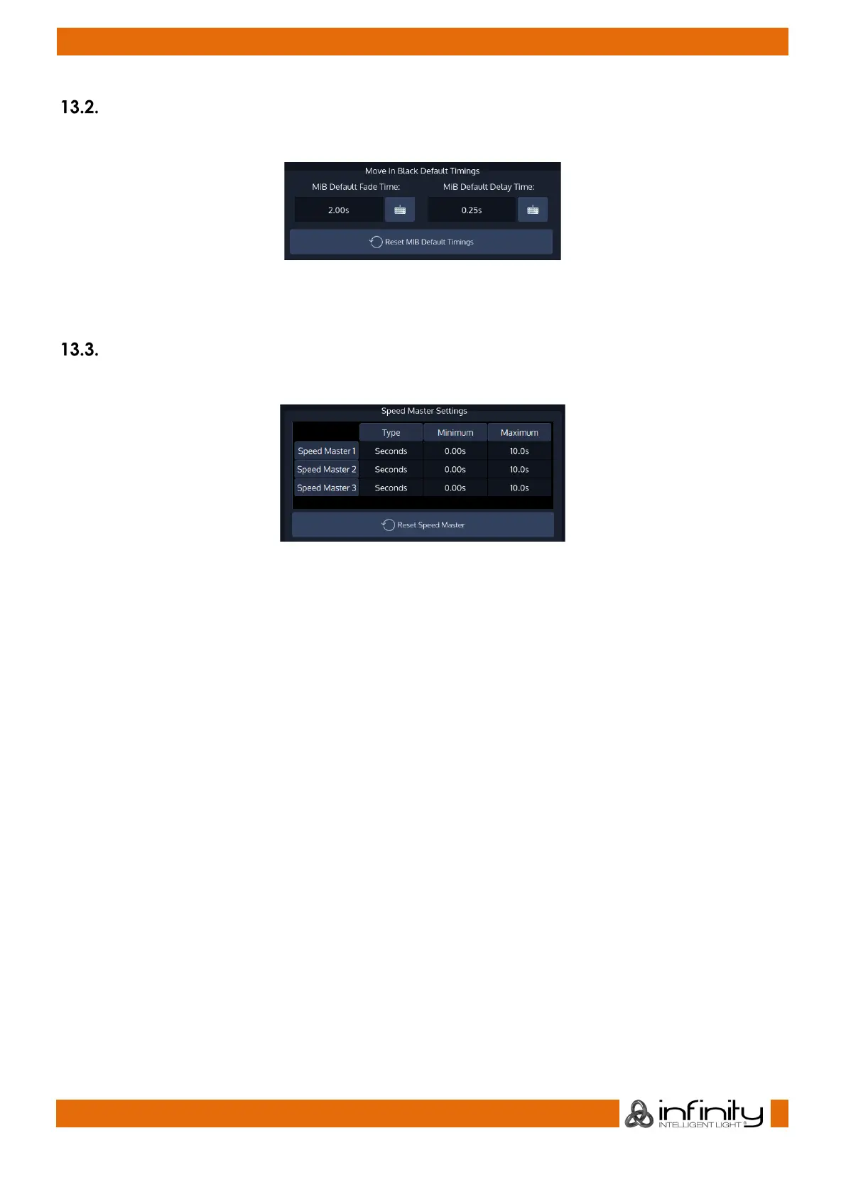 Each Speed Master may be configured to either count in seconds or BPM. For each setting a Minimum