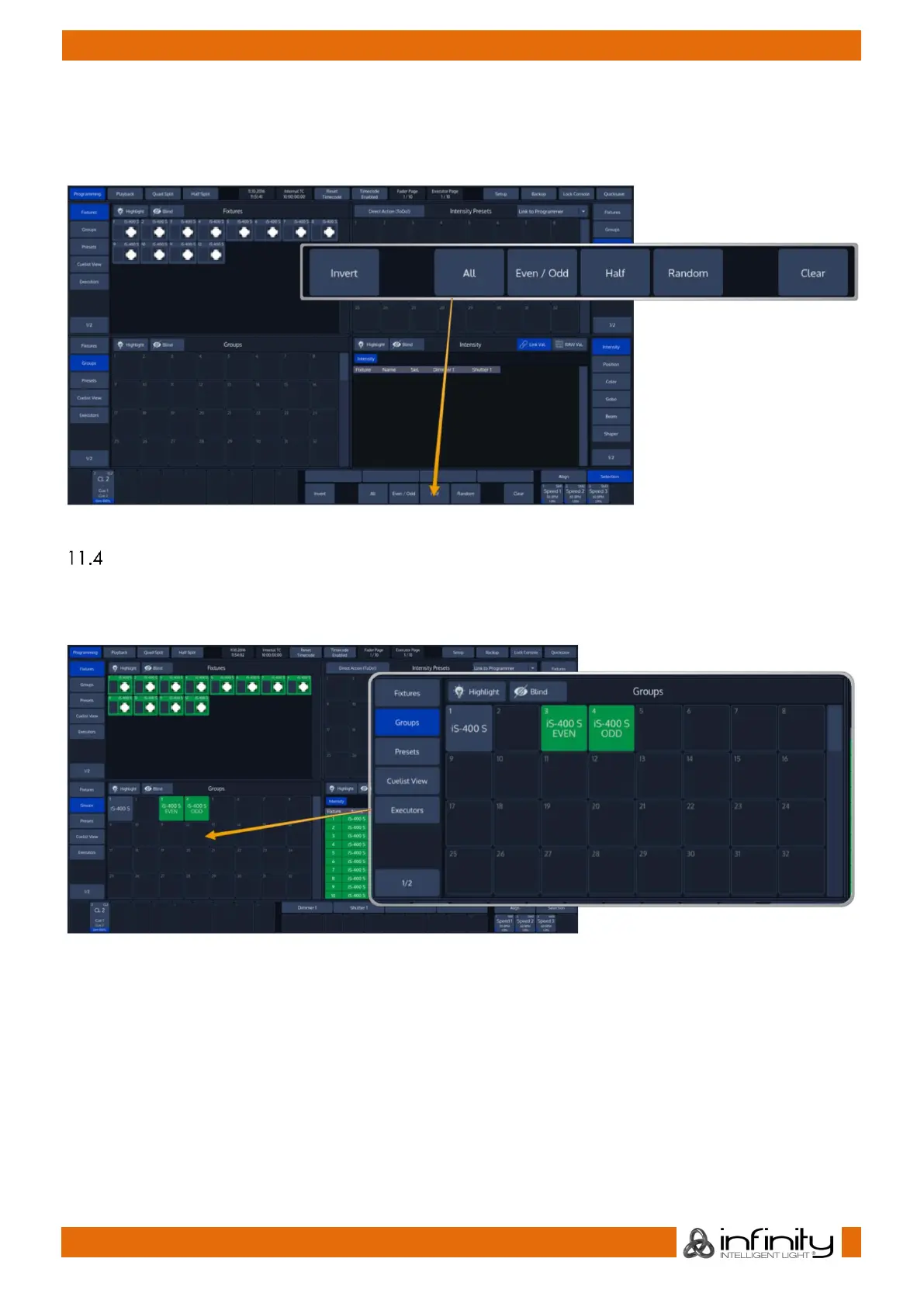 provide quick access to “Even/Odd” fixture selection and allow you to quickly select all fixtures which