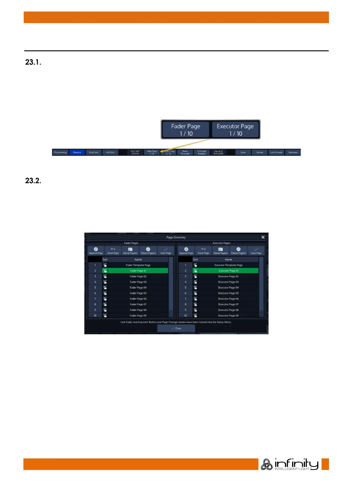 To open the Fader Page Directory, press the Fader or Executor Page Buttons on the top menu bar.