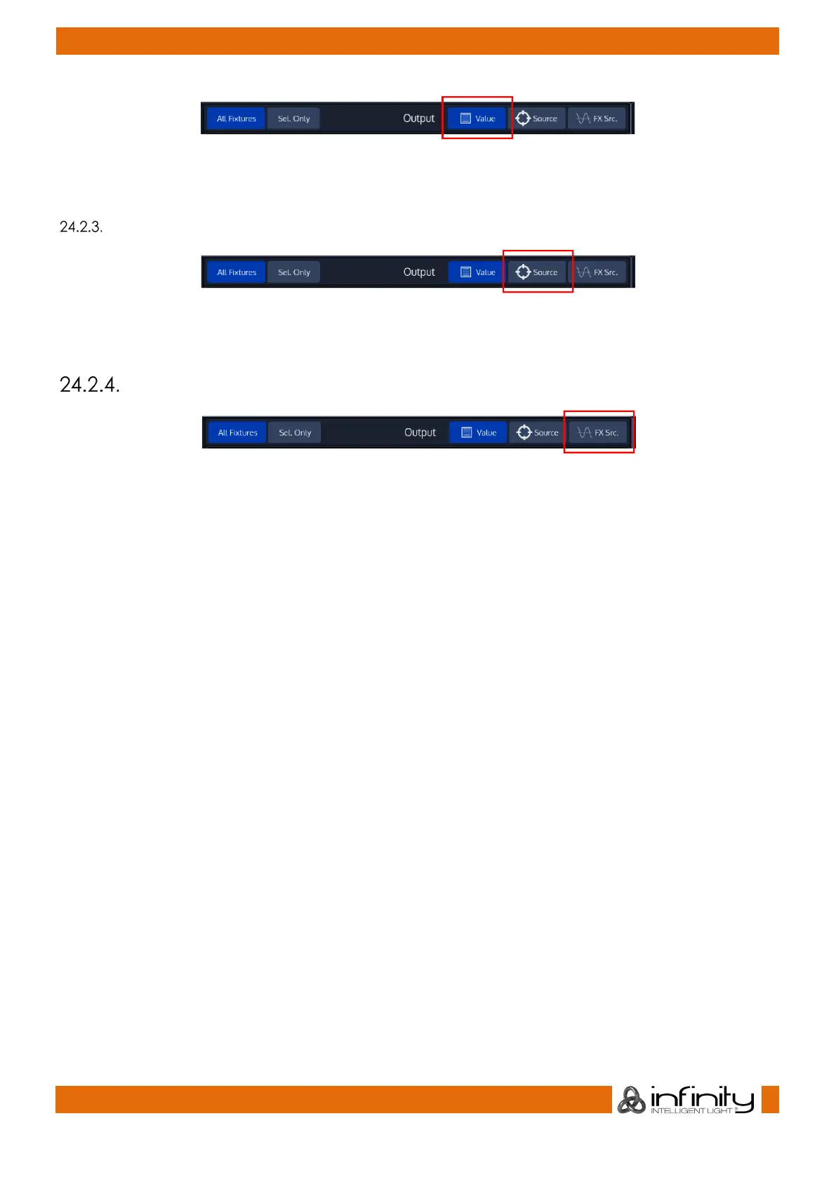 When Fx. Src is selected, the Output View will show the source of the effect being output for the value by