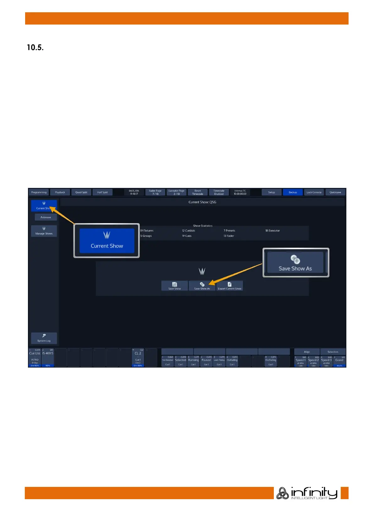 To save as a new Showfile, , head over the Backup Menu by pressing the Backup Button on the Top