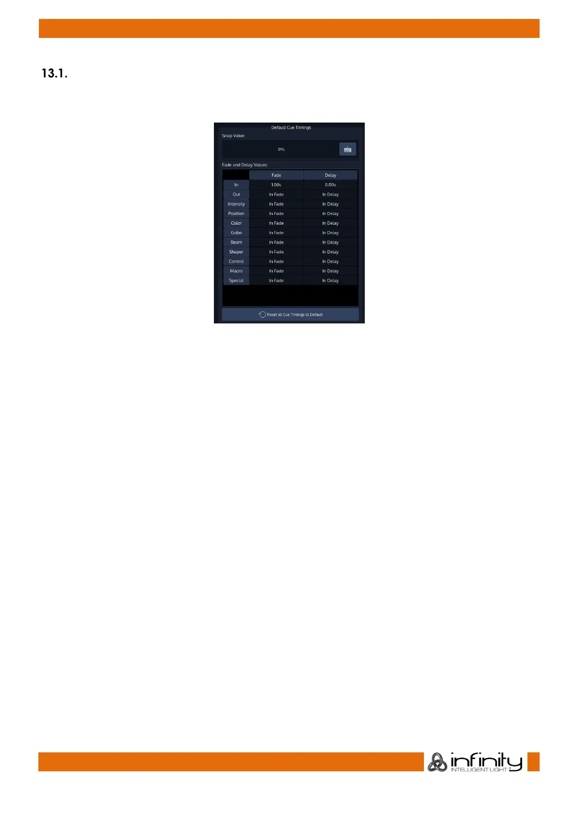 The Cue Default Timings will be stored as part of the Showfile. Cue Default Timings may be overridden by