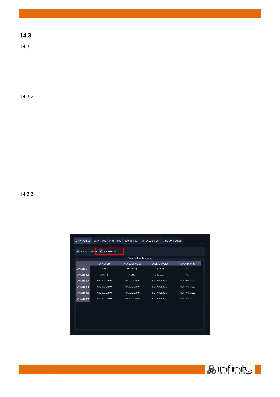 new screen allowing to enable or disable the sACN Output, as well as to configure the sACN Universe on
