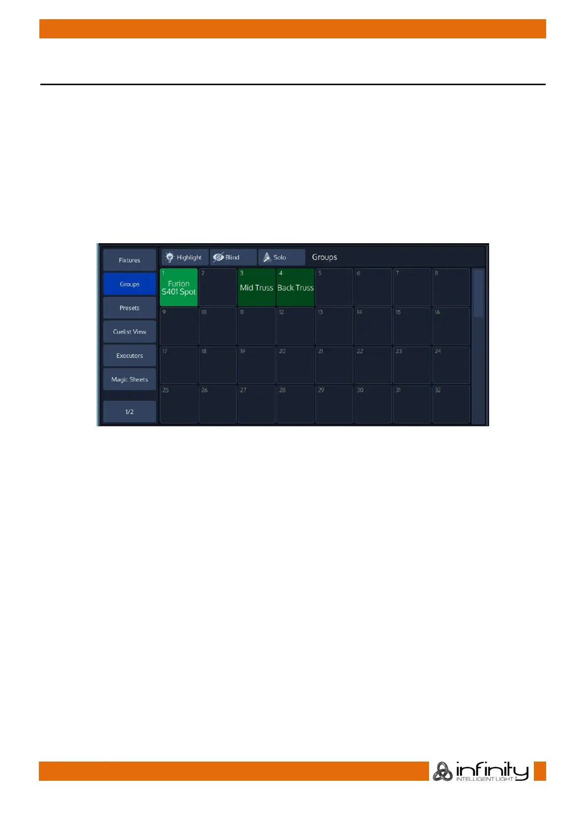 Groups are meant as a programming aid and are a quick way to access specific selections of fixtures.