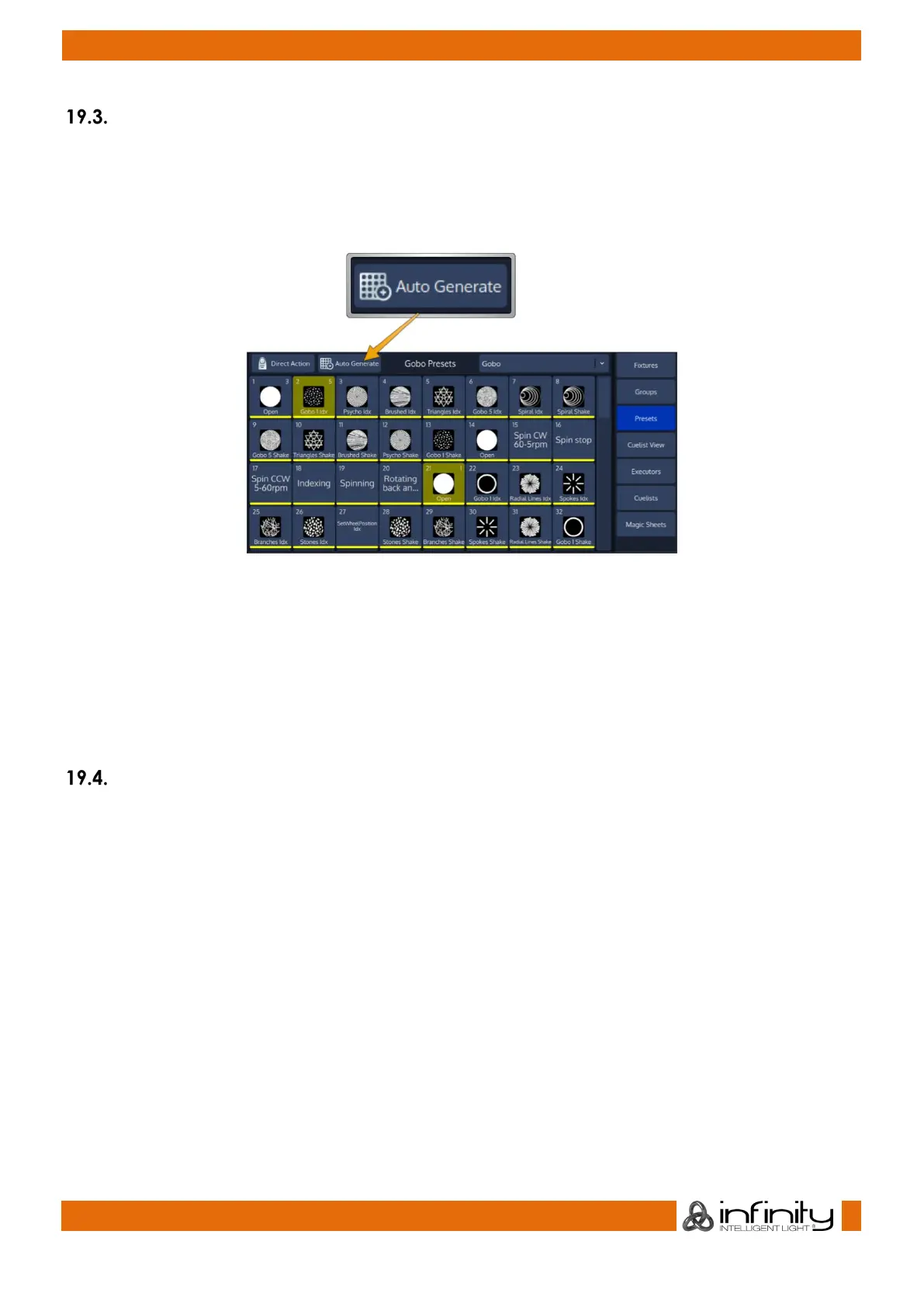 To automatically generate Presets for the selected fixtures and the selected Attribute Group Pool, click