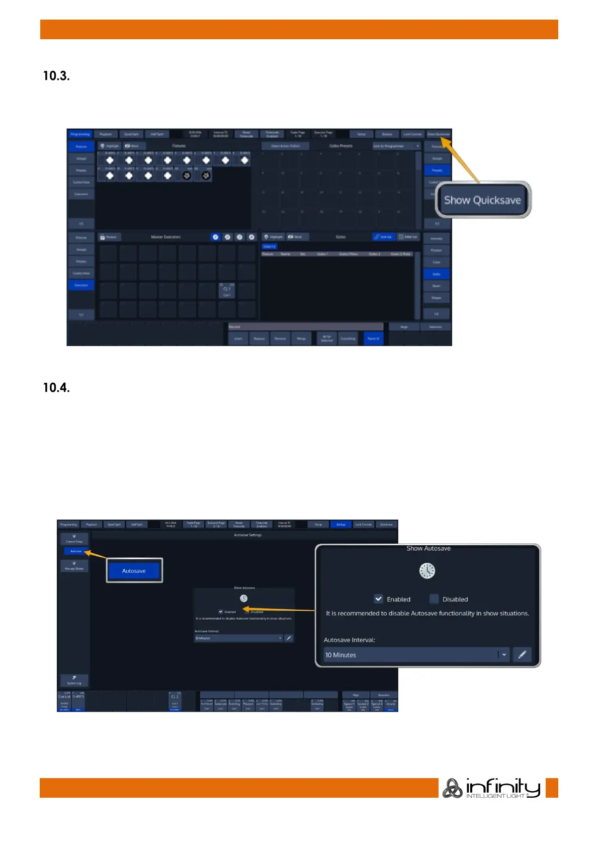 For added convenience, you may enable the „Autosave“ function which will make sure your showfile is