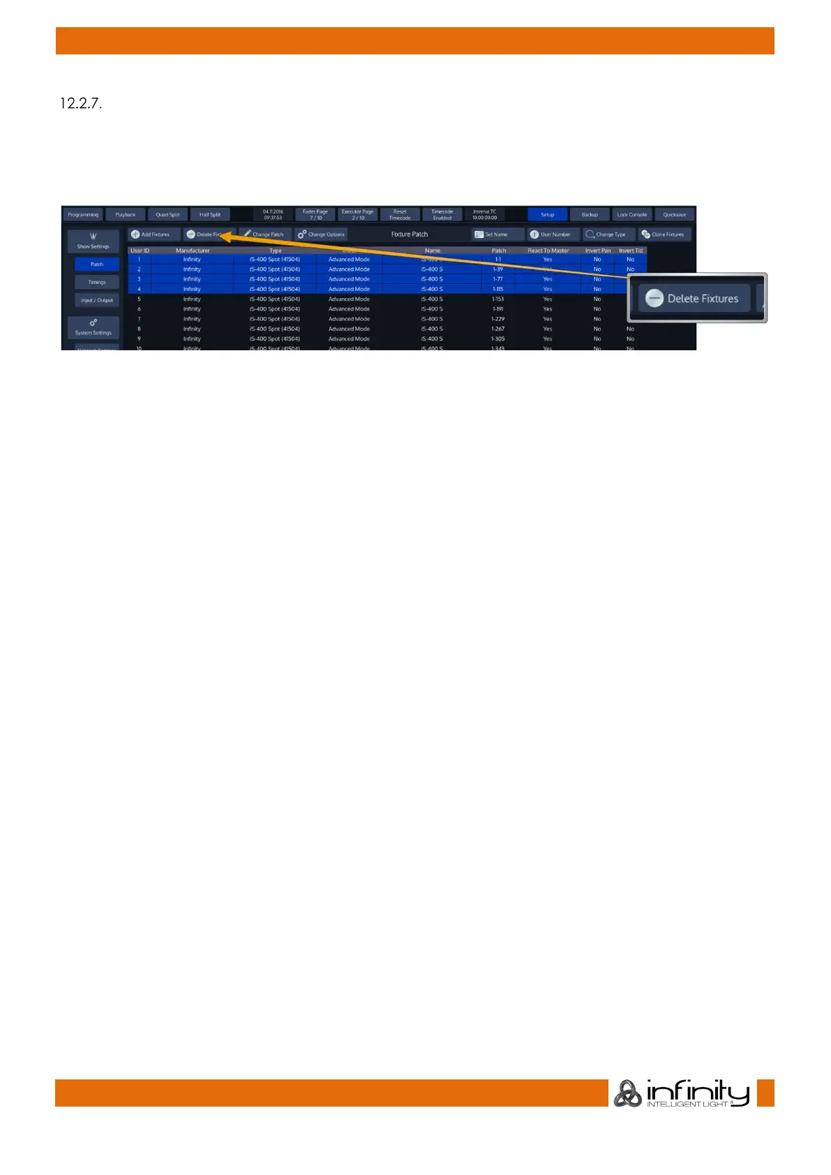 Click on Delete Fixtures from within the Patch Screen. A confirmation dialog will be shown.