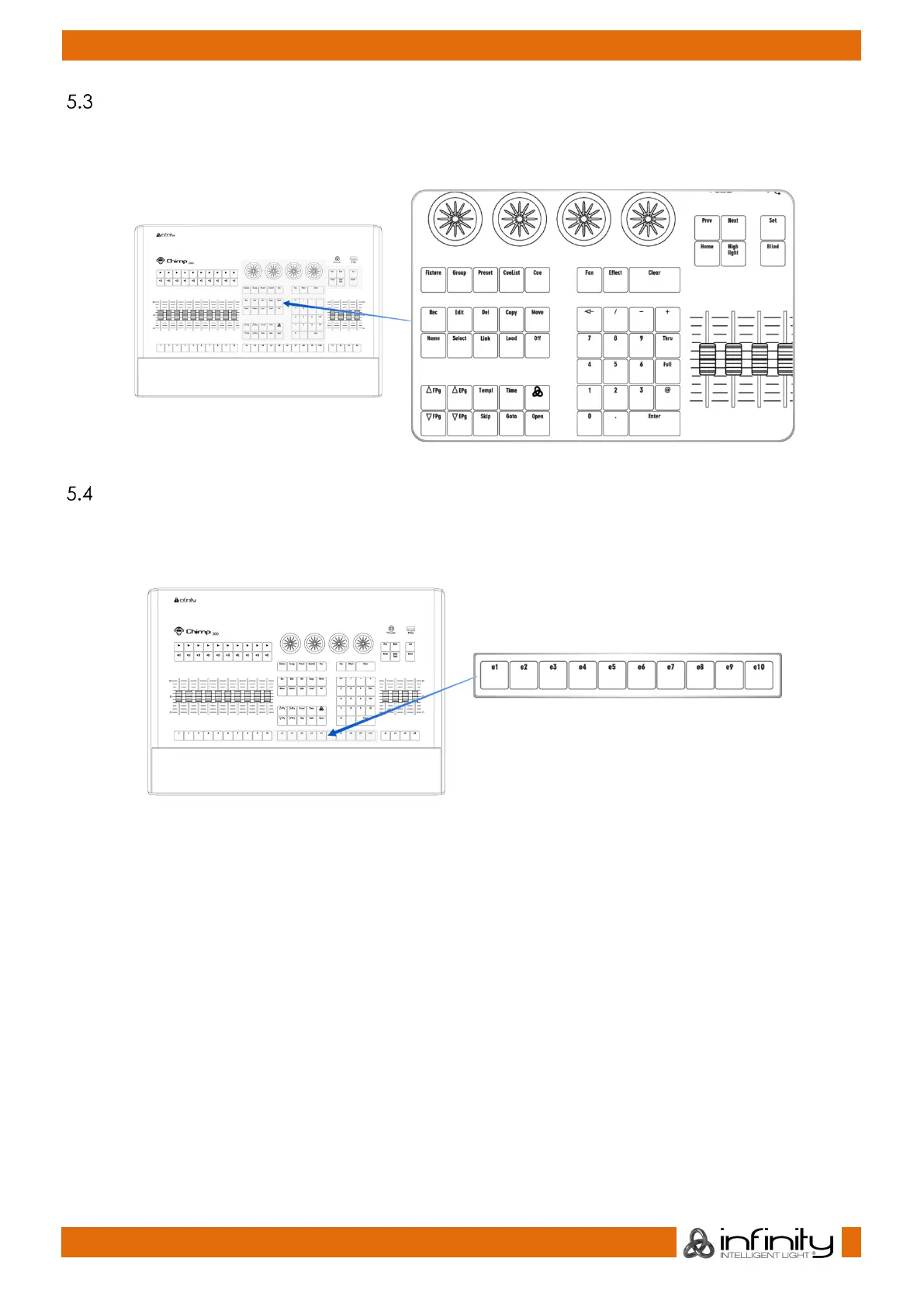 You will find ten buttons labeled e1 to e10 next to the faders, below the programming section. These may
