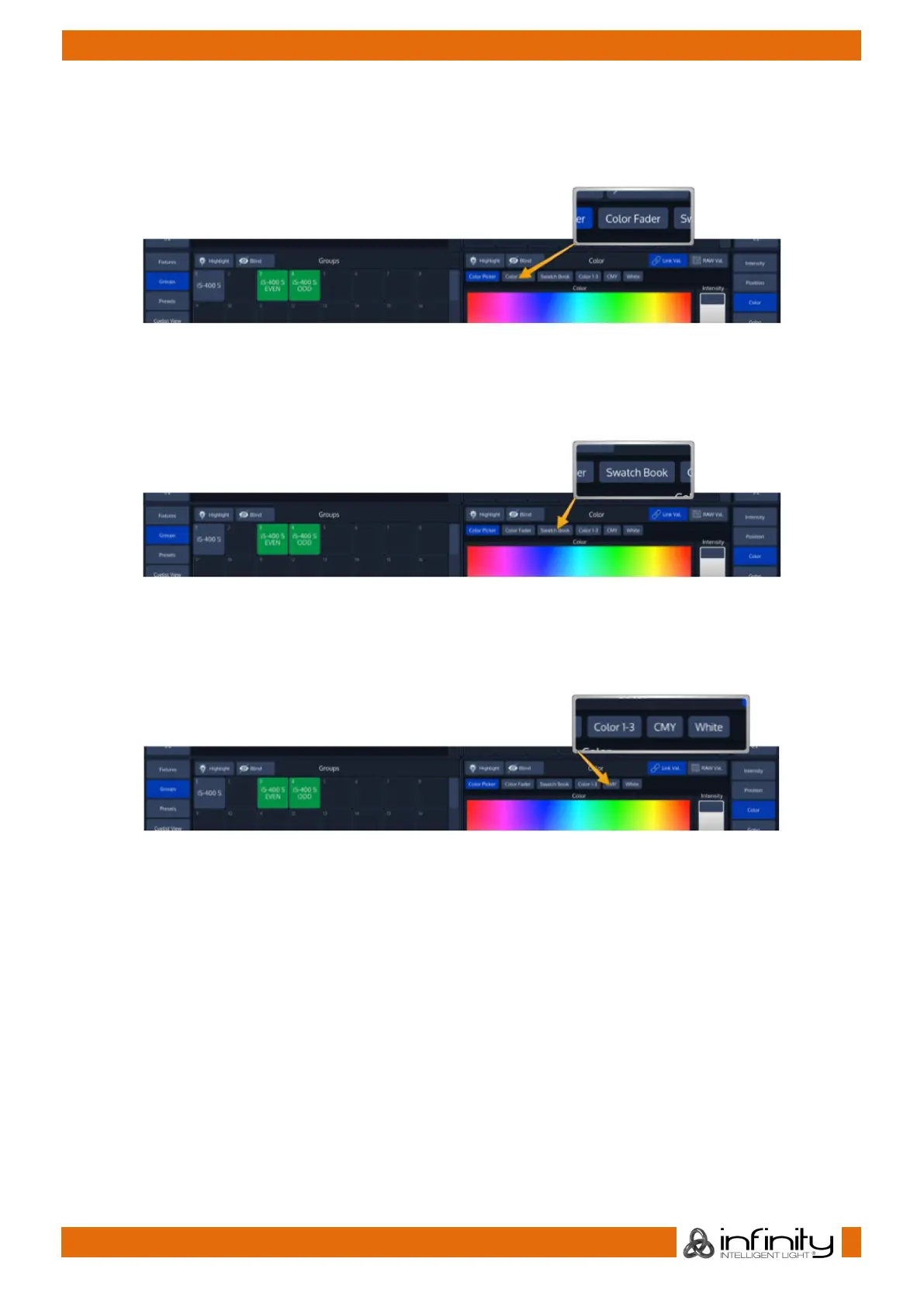 of the fixture , press the Color button found in the programmer side menu. Select Color Faders from the