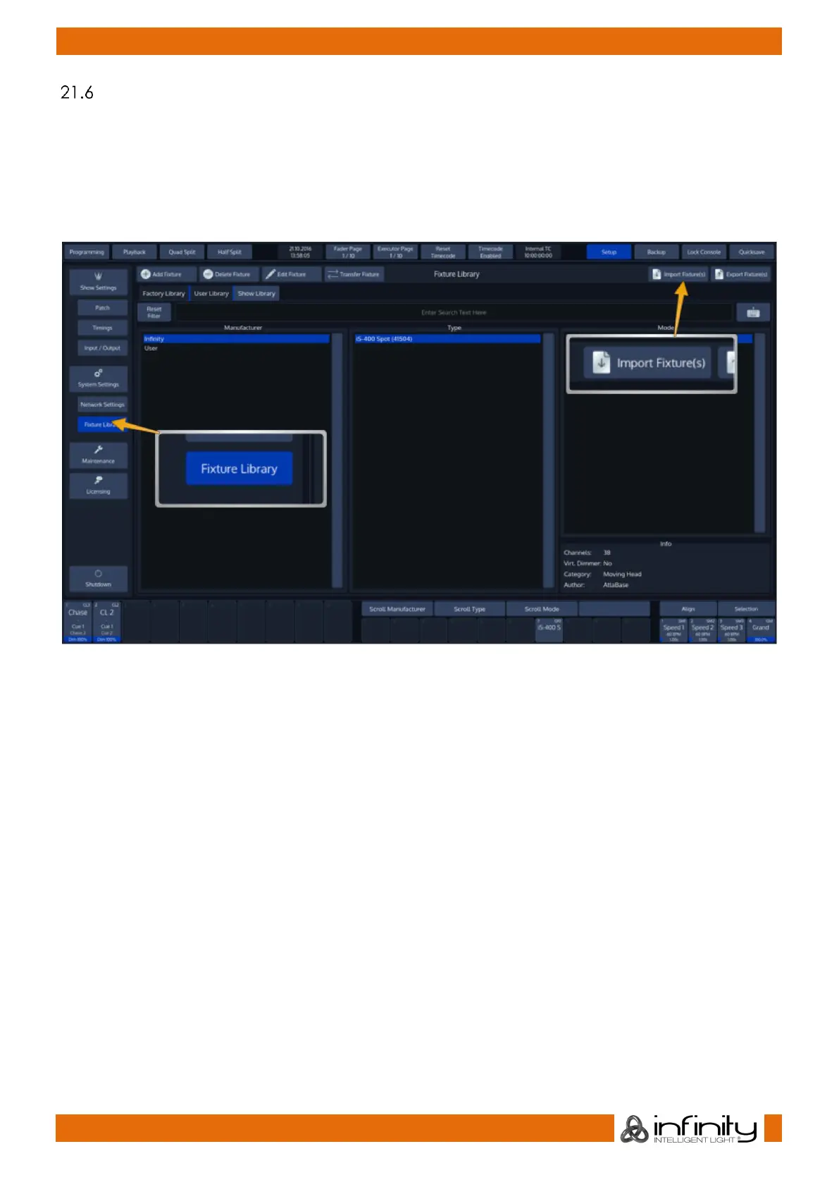 Fig. 52: Setup Menu – Fixture Library - Import Library from USB
