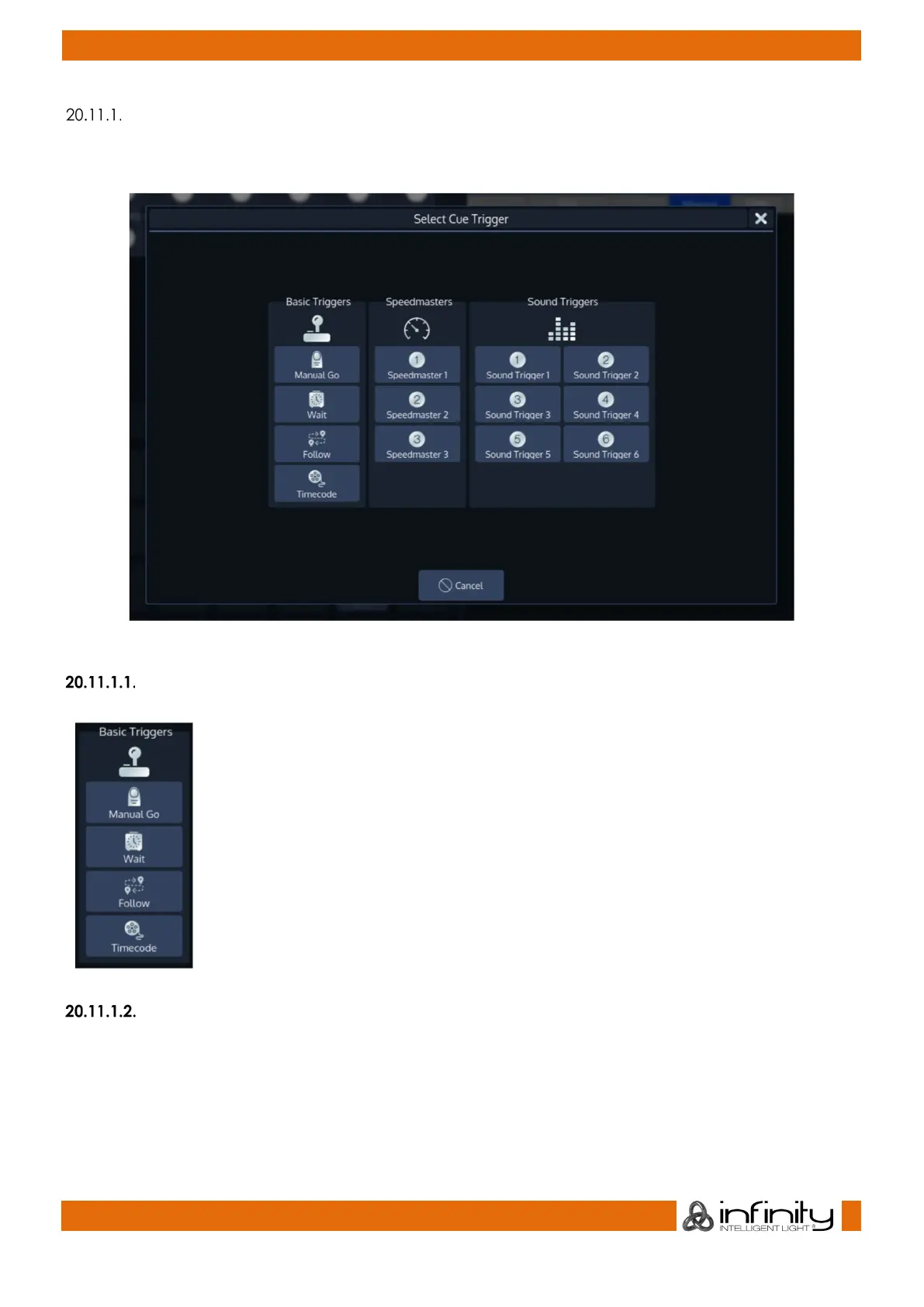 Manual Go: This Cue will not playback automatically. The Trig Time column is