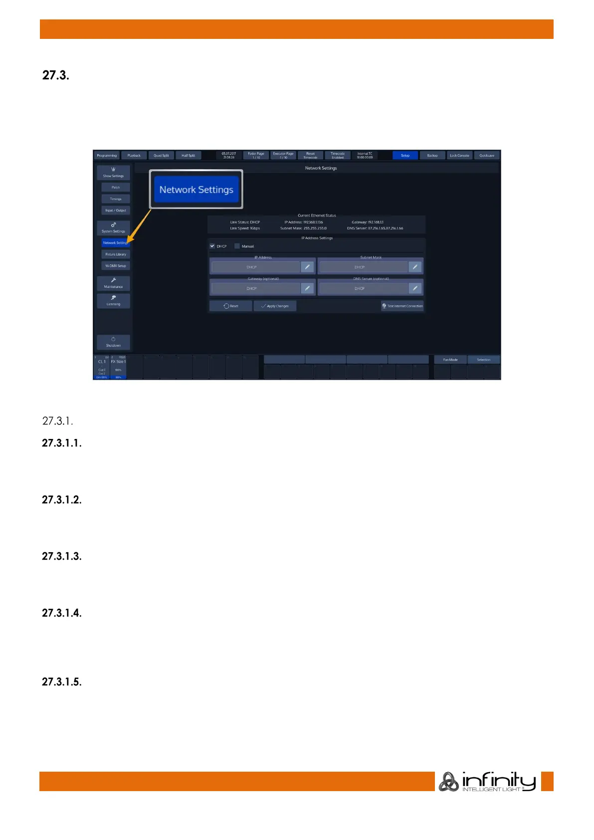 You may now change IP-Address Settings and test if the console has access to the World Wide Web. This