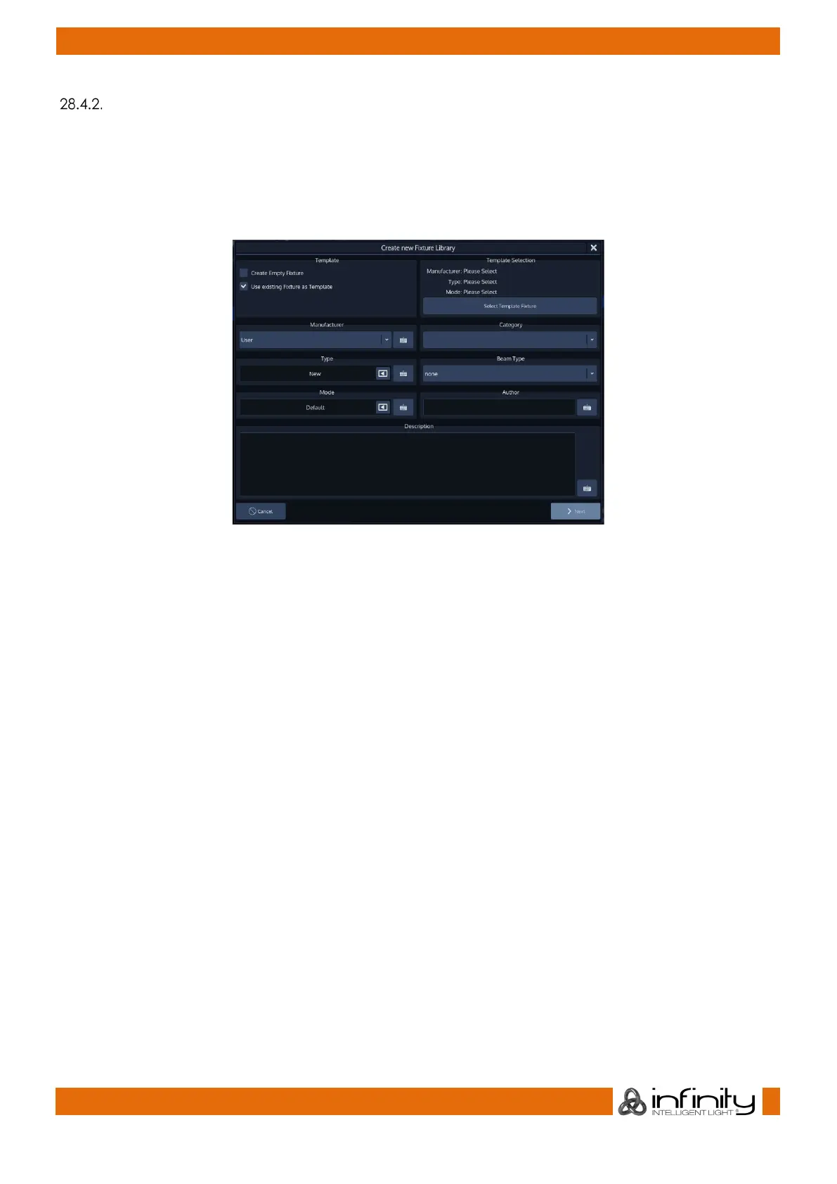 The Create New Fixture Library screen is shown again. Make sure you entered a Manufacturer and Name