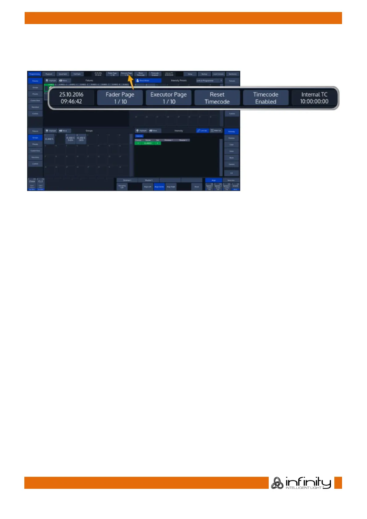 Timecode back to the start value or enabling and disabling the timecode. The label on the right side