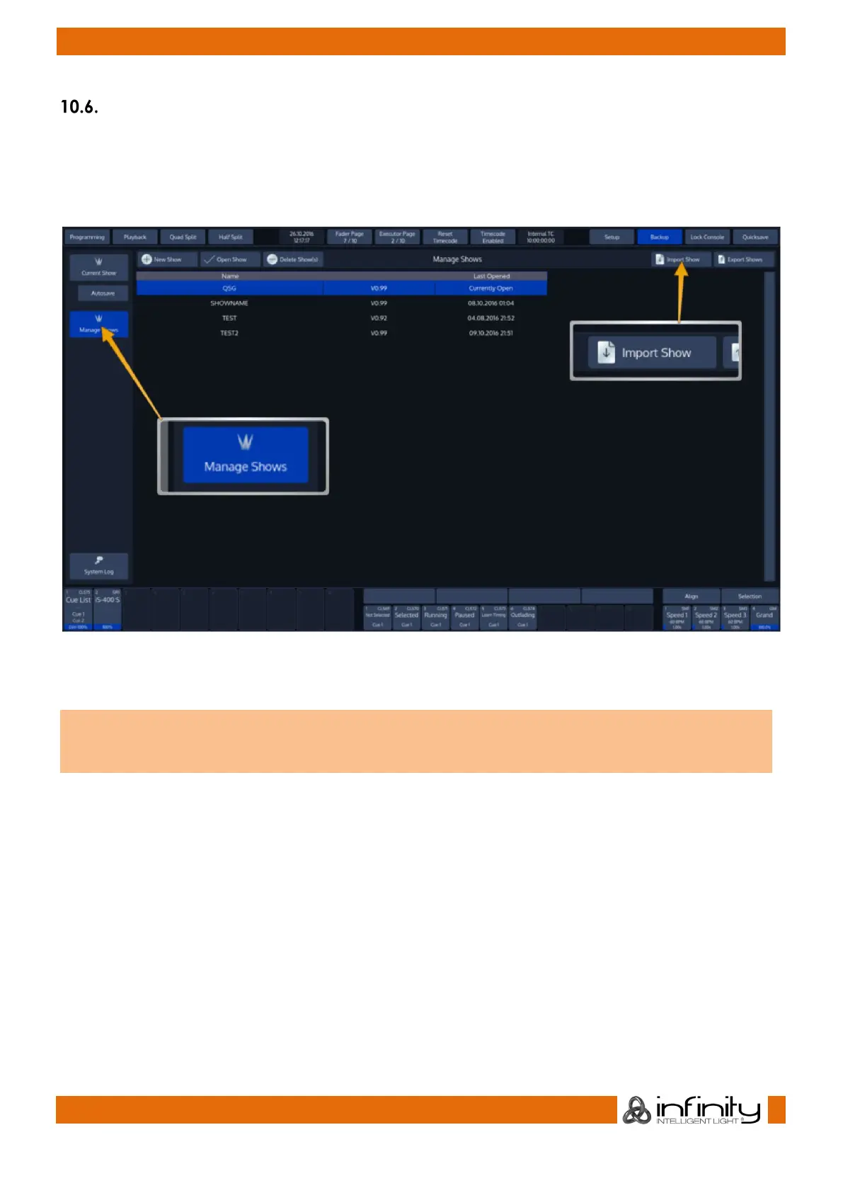 When the Manage Shows screen is shown, click on Import Show.