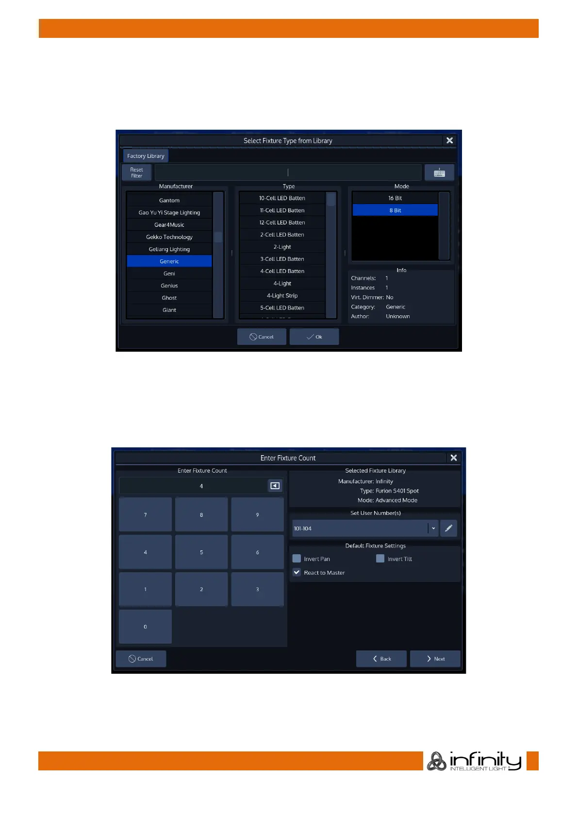 You are asked to enter the fixture count, and more importantly, set a user number which will be the