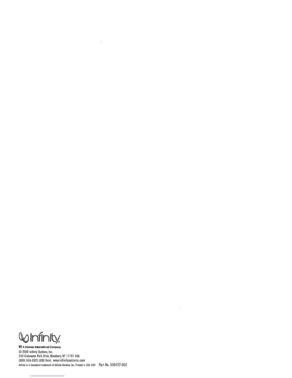 intinily is a registered trademark of lofini& ~vsten~, IOC. Printed in USA s/02