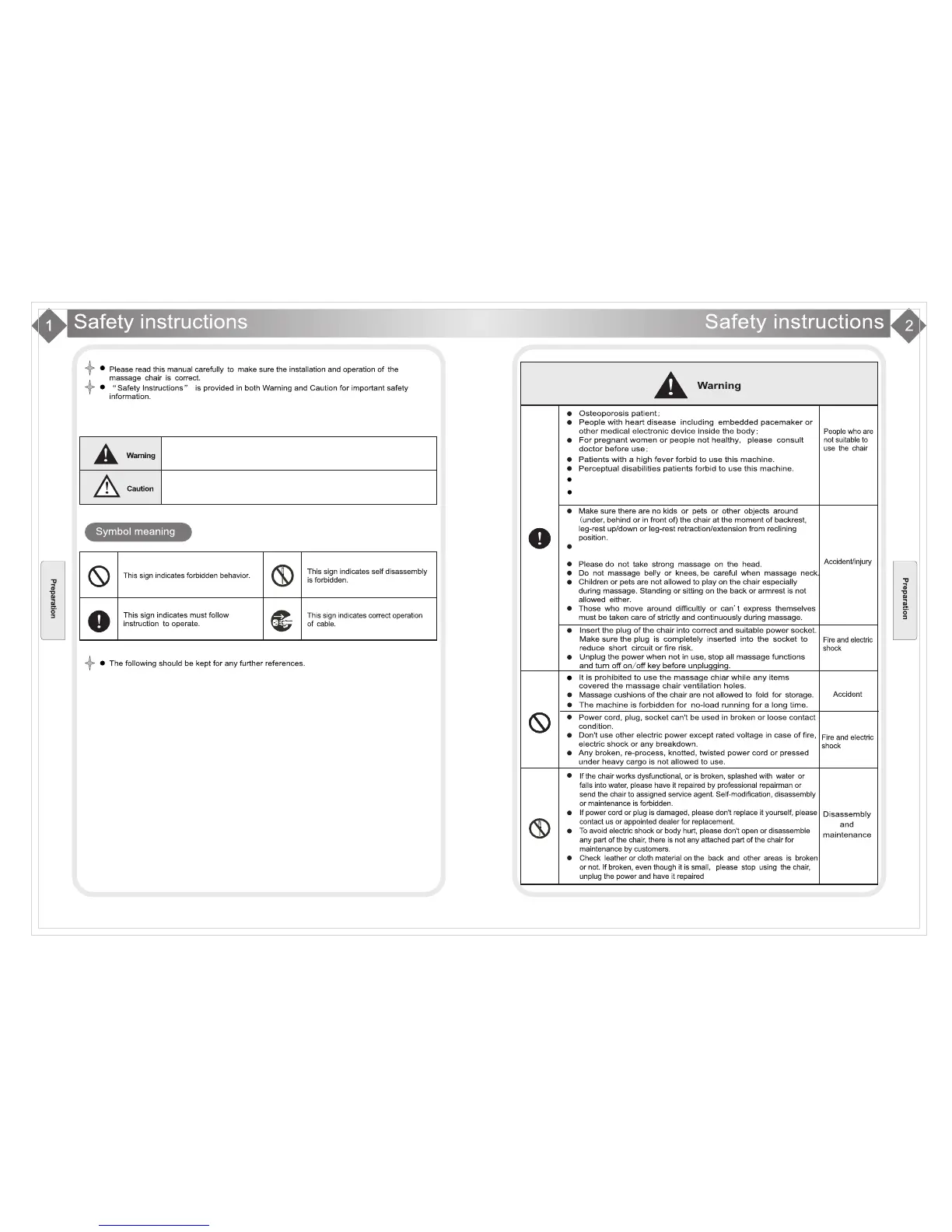Infinity Escape - Safety Instructions and User Precautions; Symbol Meaning and Usage; User Health and Prohibited Use; Operational Safety Guidelines