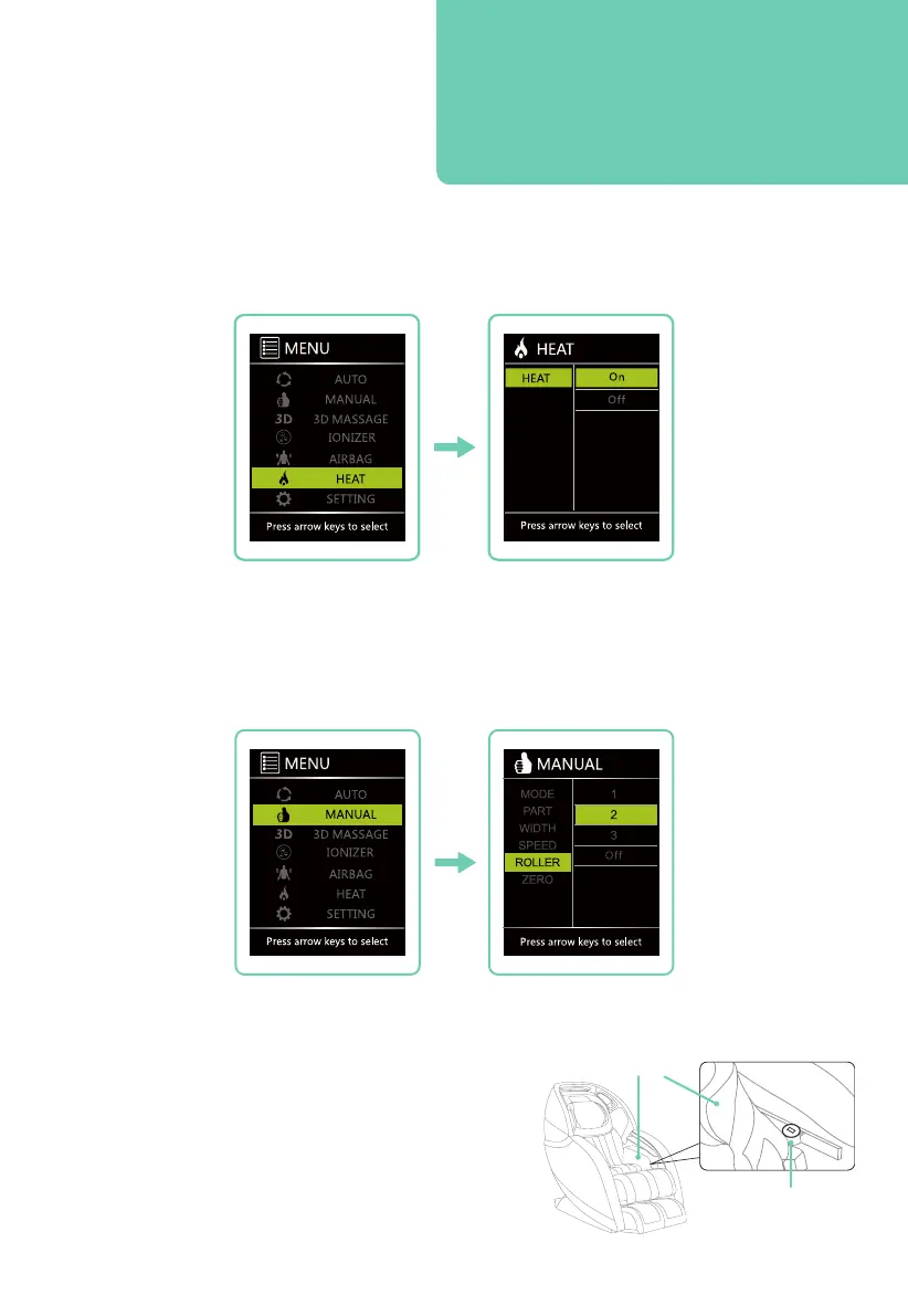 Select MANUAL from Home display, then press up or down button to navigate to ROLLER.