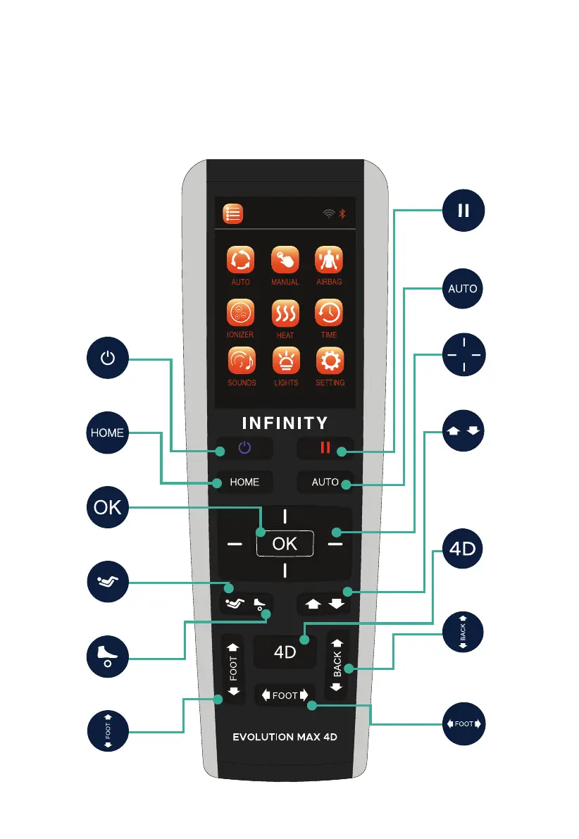Infinity EVOLUTION MAX 4D - Taking Control; Remote Control Layout