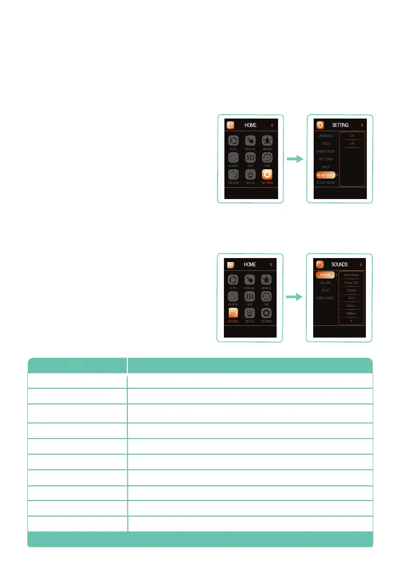 Note: Bluetooth must be ON for sounds to work.